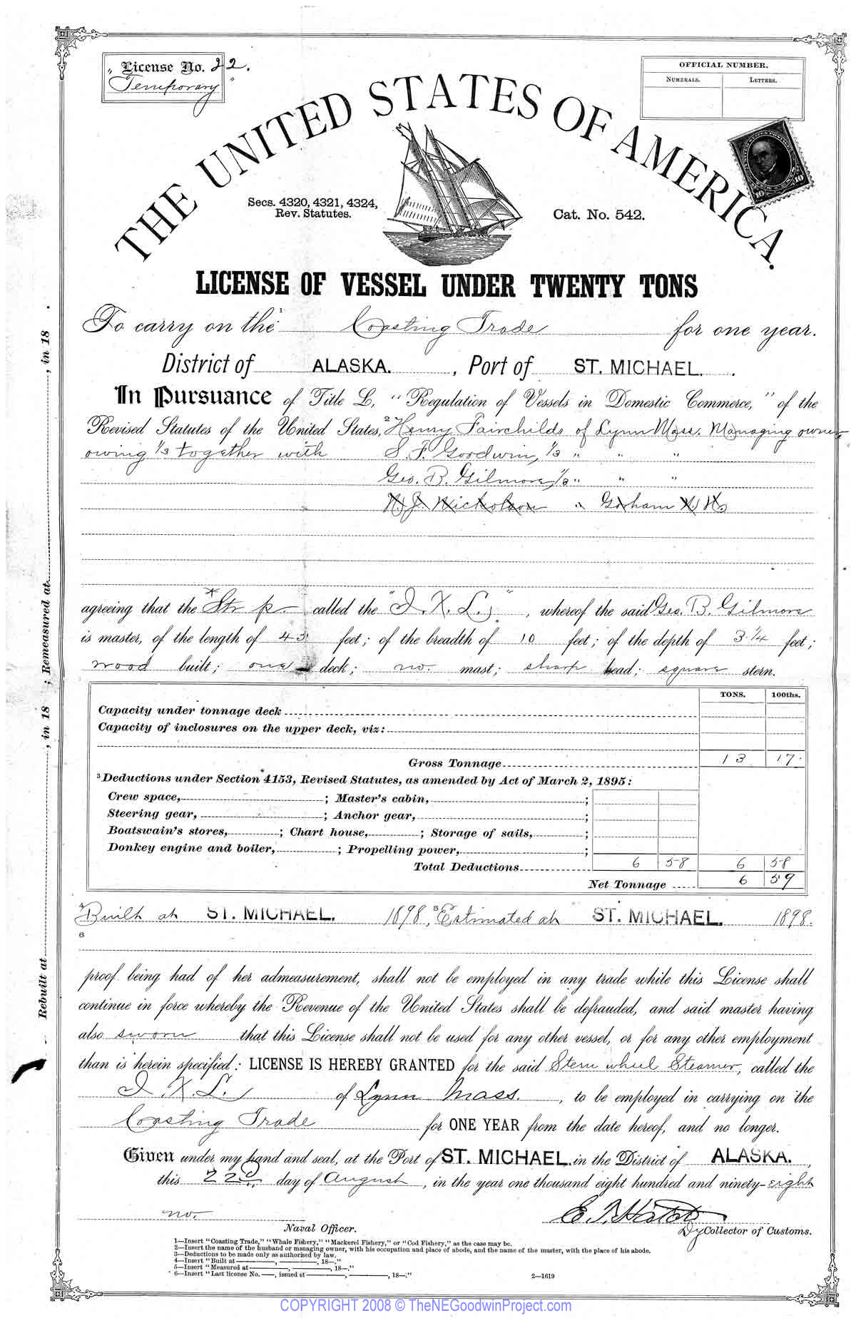 and George Gilmore of Lynn and N. J. Nicholson of Gorham NH set out to Alaska in 1898